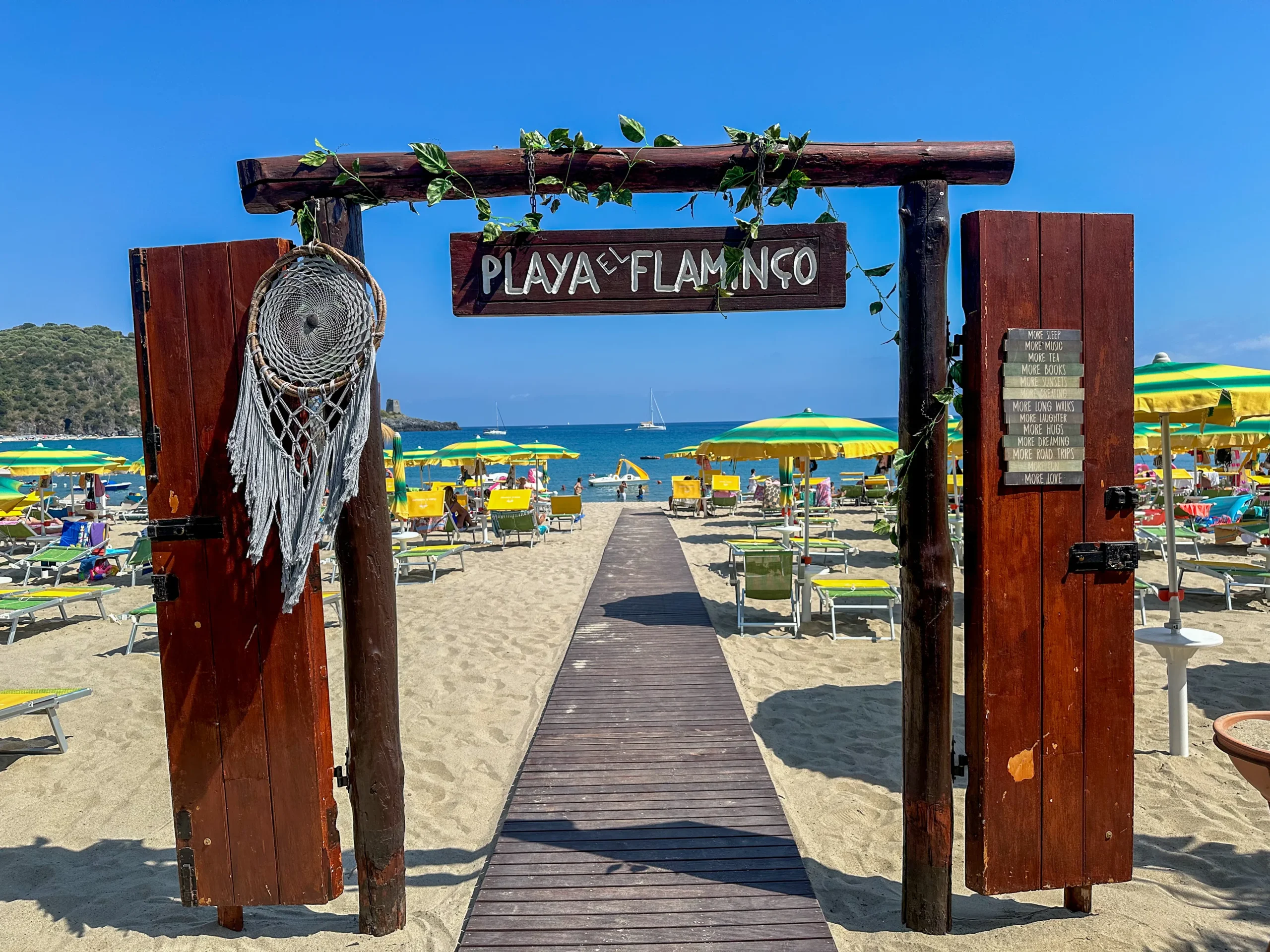 Di sera, Playa El Flamengo si trasforma in una vivace discoteca, diventando il cuore pulsante della vita notturna di Marina di Camerota.